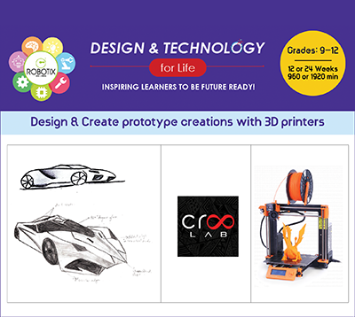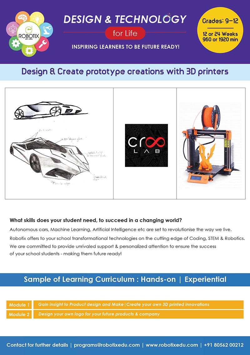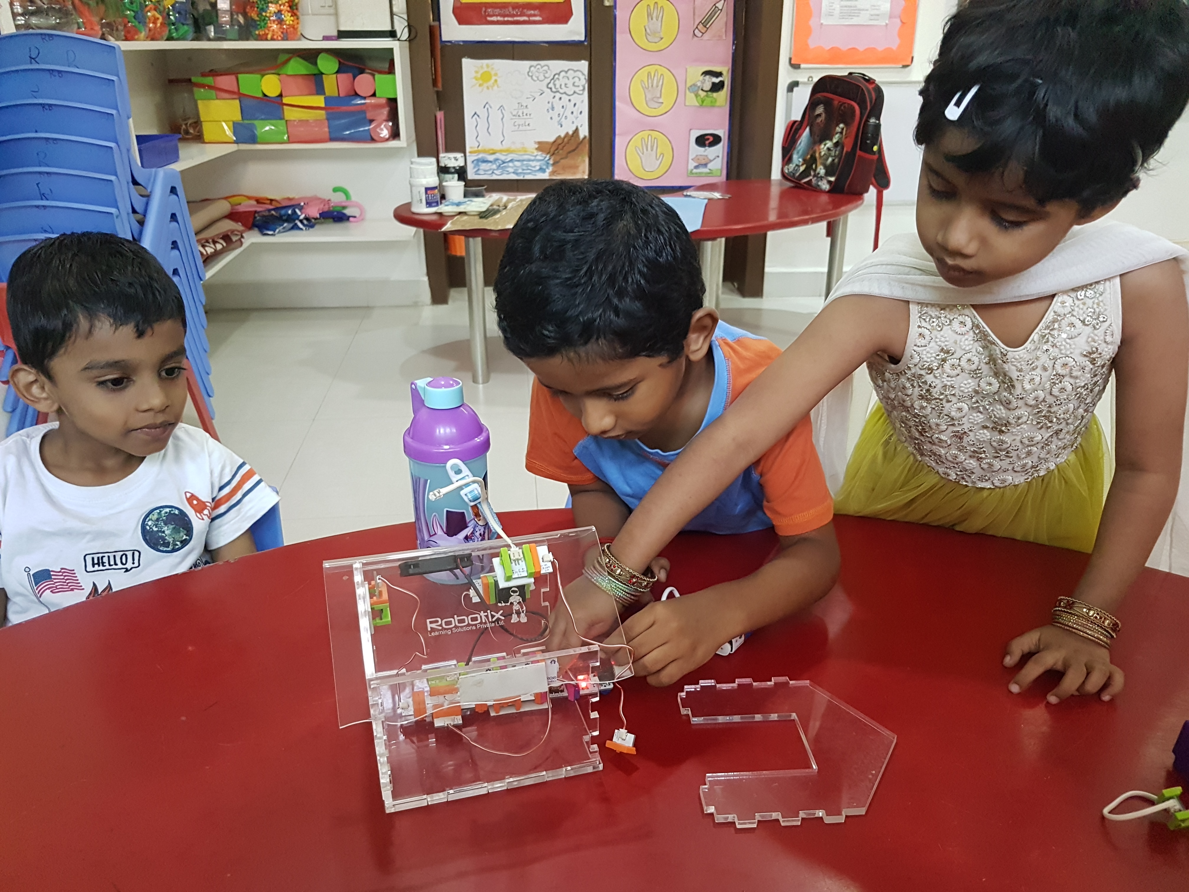 Robotix’ programmes develops the spirit of innovation and creativity in young kids and teens. Children learn coding, robotics and makerspace activities which grows their skills, such as critical thinking, logical reasoning, collaborative learning and growth mindset. Students build, code and create solutions to real world problems in this 12 hour course which gives children a hands on understanding of Science, Technology, Engineering, Art and Mathematics (S.T.E.A.M). The programme is modeled on the Inventive Thinking Process and is open to children from ages 3 to 16.