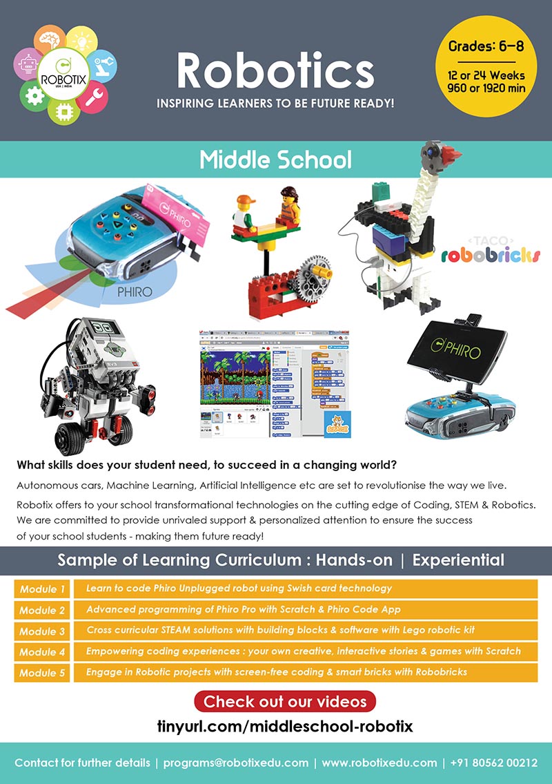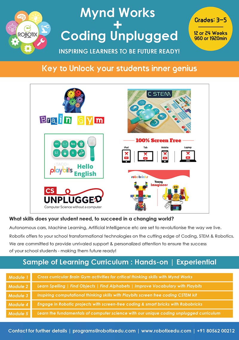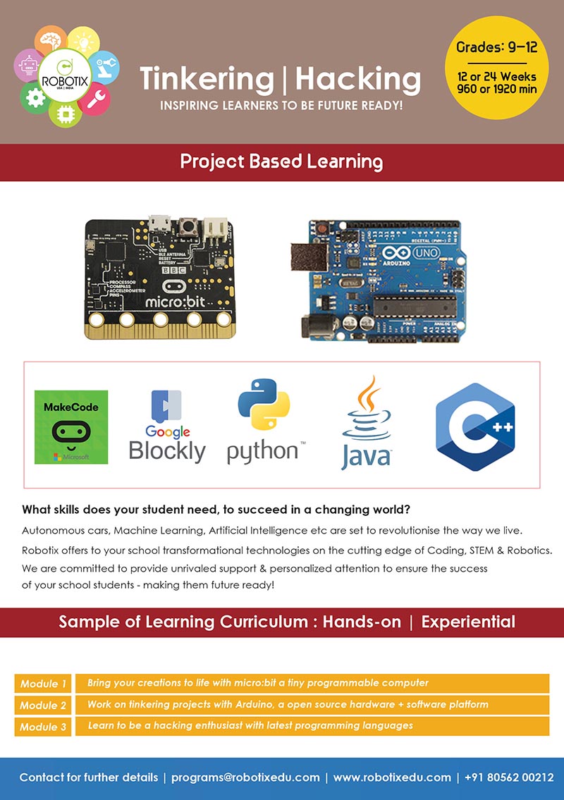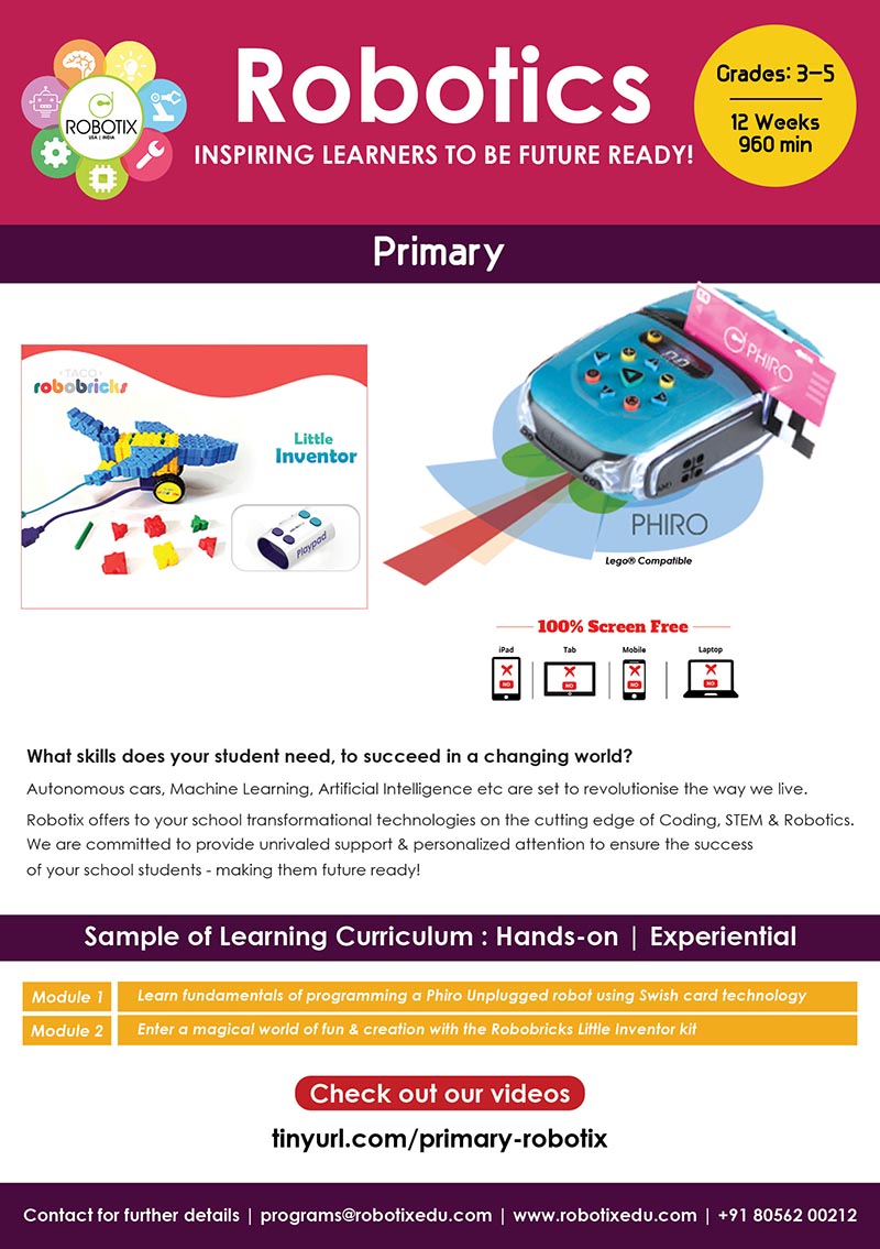 To know more : call us on +91-80562-00212 or programs@robotixedu.com