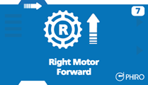 These cards make Phiro's motors move individually, but only with the orange control Repeat Forever or Operation Time Swish Cards. These cards helps figure out how Phiro moves in different directions and how its motors can be controlled independently.